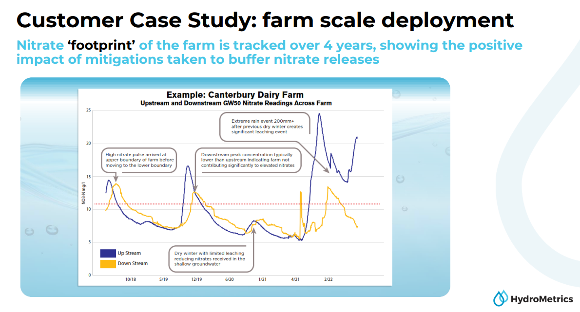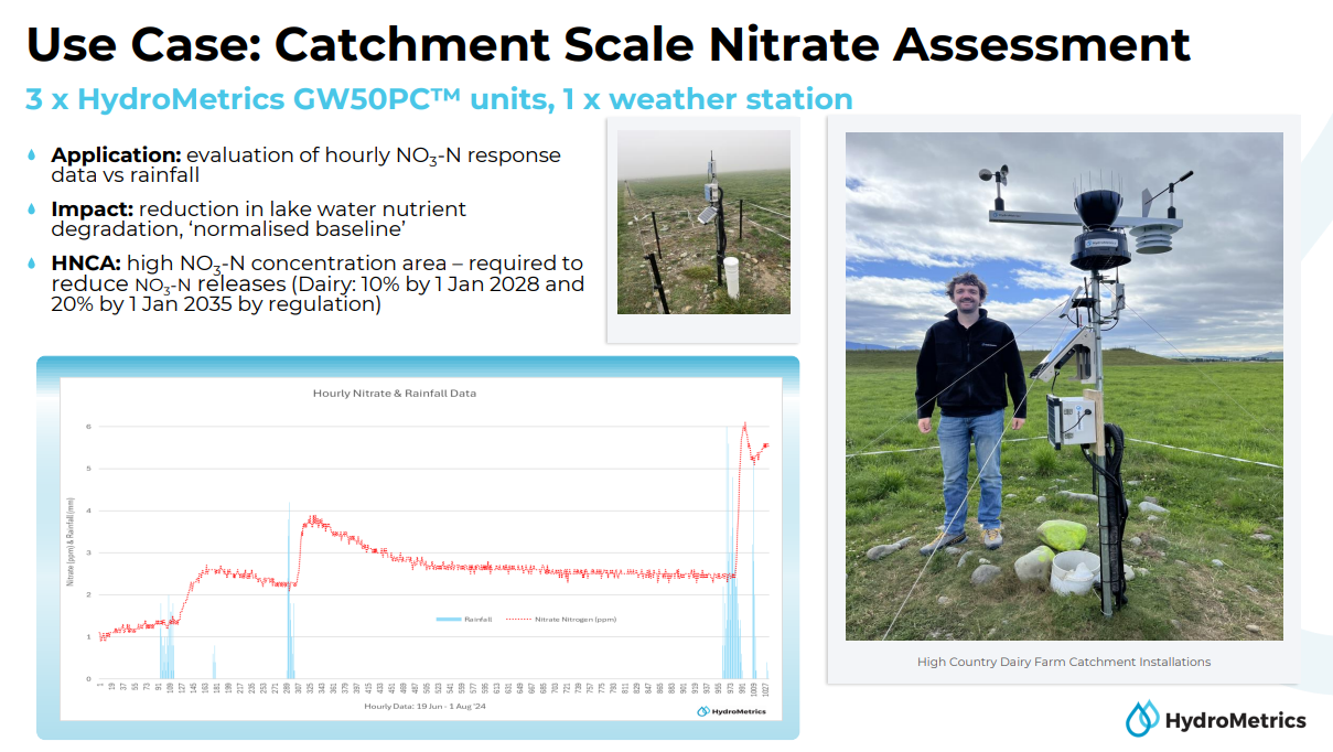 - Long term measurement of total nitrates in groundwater via a bore or well at a site with data logging and/or remote telemetered data.